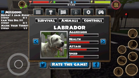 《流浪狗模拟器》是一款充满趣味的模拟类游戏,核心玩法是让玩家沉浸式体验流浪狗的真实生存状态。游戏初始阶段,玩家便可以自由挑选心仪的狗狗品种,不同品种的狗狗有着各自独特的初始属性设定。在游戏进程里,玩家需要不断搜寻食物来维持体力、避免饥饿,同时还要通过各种方式提升自身的能力值,最终在流浪狗的生存世界中角逐“王者”的荣誉称号。