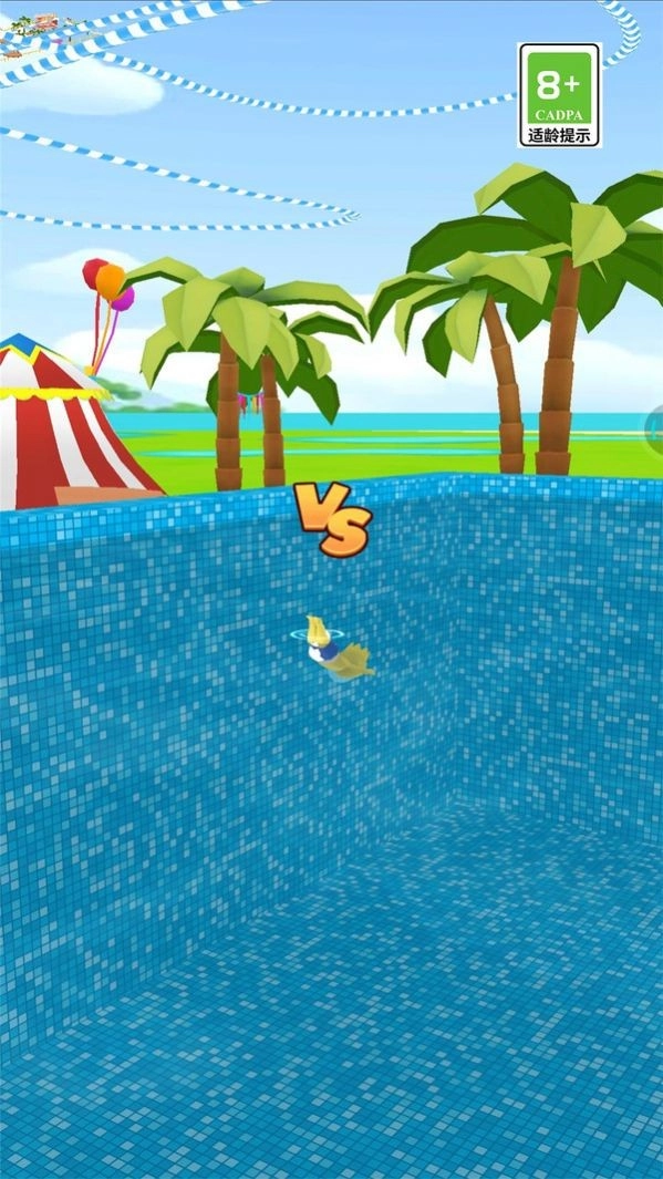 玩家将置身于精心设计的大型水上乐园赛场,操控角色在水滑梯与泳池等设施间移动竞速。