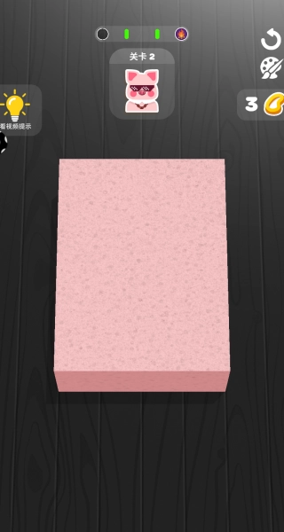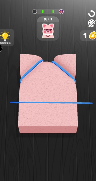 第二关会遇到粉红色的长方形海面,系统只提供3根橡皮筋当作切割工具。
