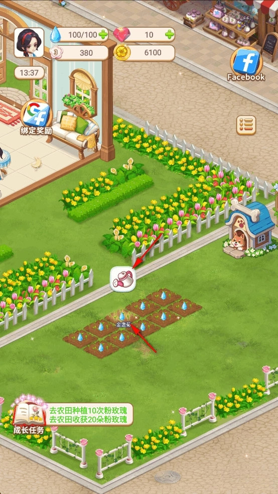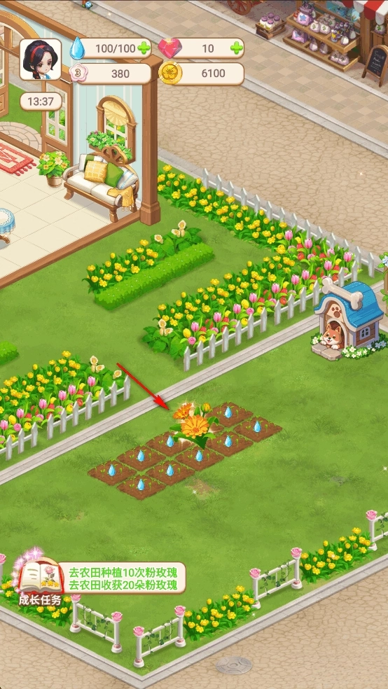点击种子会出现水壶,拖动水壶进行浇水,鲜花长大