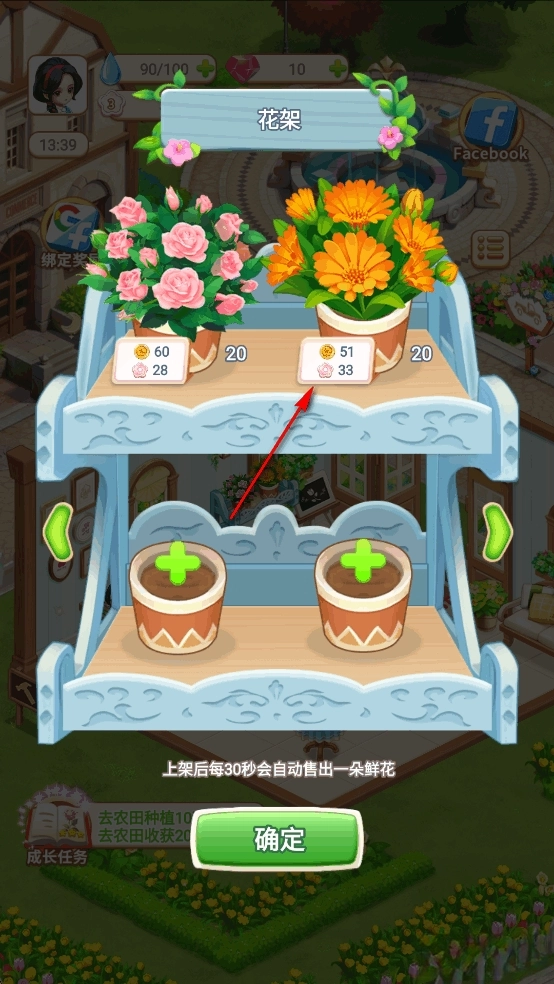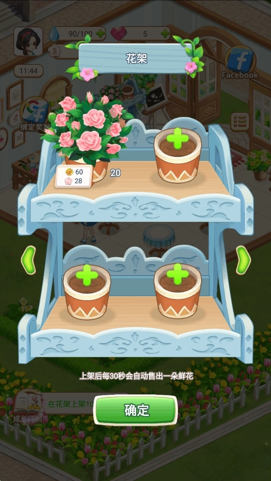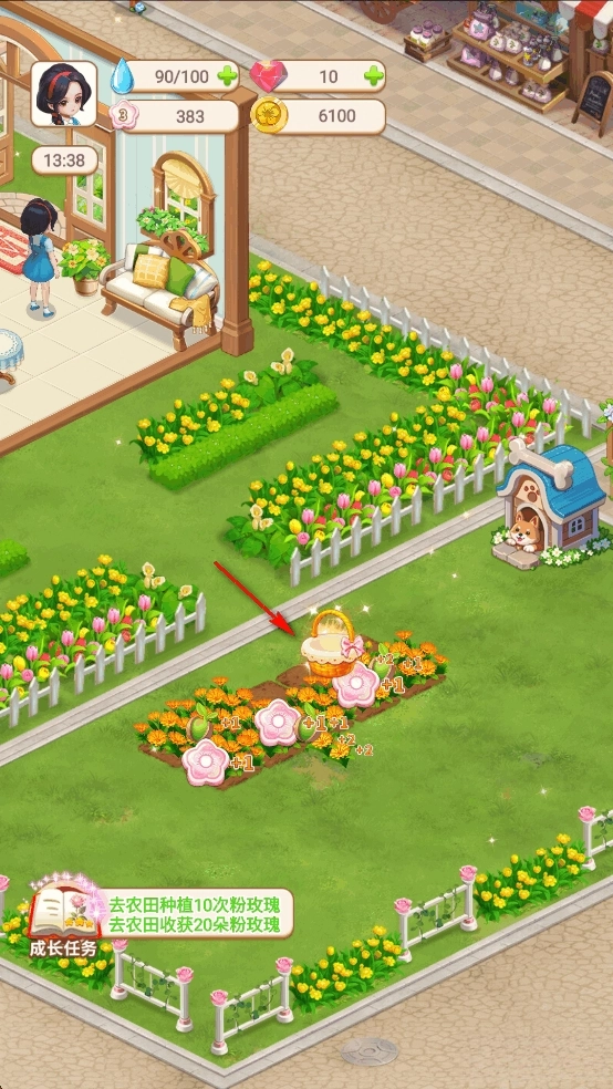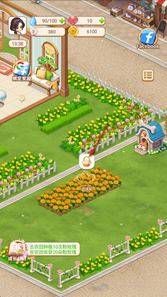 点击鲜花,出现花篮,拖动画篮收获鲜花