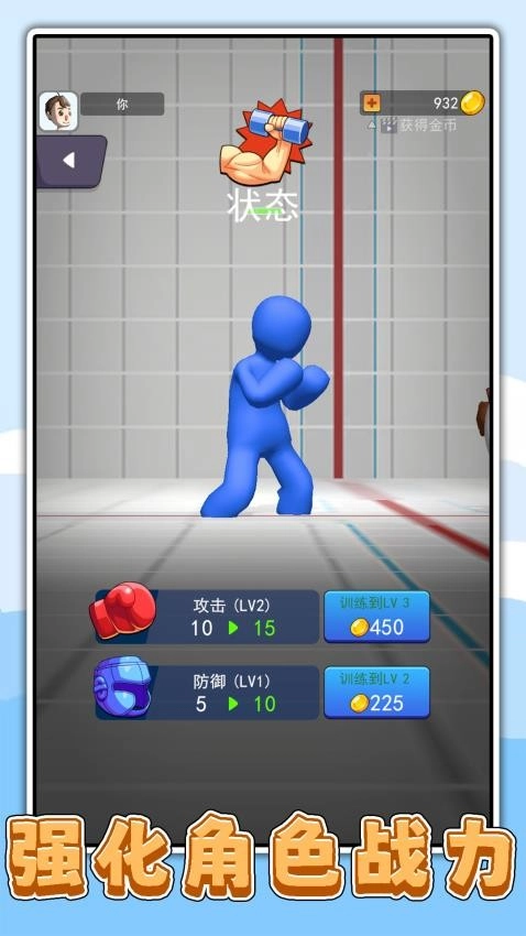 战斗胜利后能够获取金币,借助这些金币对角色的攻击、防御属性开展训练和升级,以此增强战斗力,来应对后续更加强劲的对手。