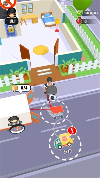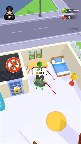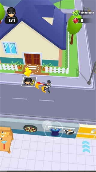 你将扮演小偷角色潜入房屋,界面会显示你的角色等级与资源数量,只需按照提示进入目标房屋即可。