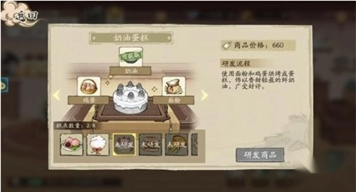 进入店铺后,点击糕点选项就能研发全新美食,不过得先解锁对应的材料才行。