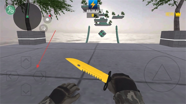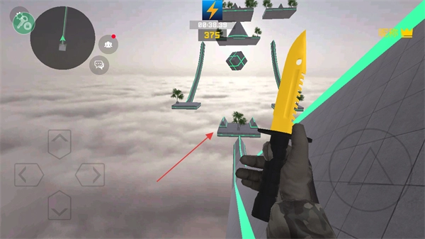 用左侧方向键操控角色,准备向空中平台跳跃。