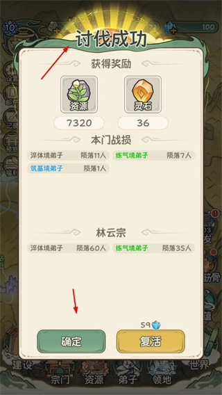 在对其他宗门的讨伐行动取得成功后,能够获取资源、灵石之类的奖励,不过与此同时,也必须正视本宗门在战斗中出现的损耗情况。