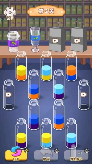 要留意液体颜色深浅的变化情况,有些关卡里颜色相同但浓度有差异的液体是不能混合的,所以仔细观察是完成排序任务的关键所在。