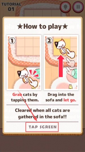 拖拽猫咪到沙发松手,全部猫咪就位即过关。