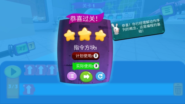 《疯狂兔子:编程学院》是育碧蒙特利尔工作室的匠心之作,致力于让基础编程知识的学习过程变得轻松有趣。游戏以一群疯狂兔子闯入空间站捣乱制造混乱为开端,玩家需要借助基础编程指令,操控机器人完成清理工作,让空间站恢复正常秩序。这款学习工具的设计十分友好,操作简便易懂。哪怕是七岁的孩子,只要具备基础阅读能力,就能在游戏过程中,潜移默化地理解并掌握程序顺序、循环逻辑和条件判断等核心编程概念。