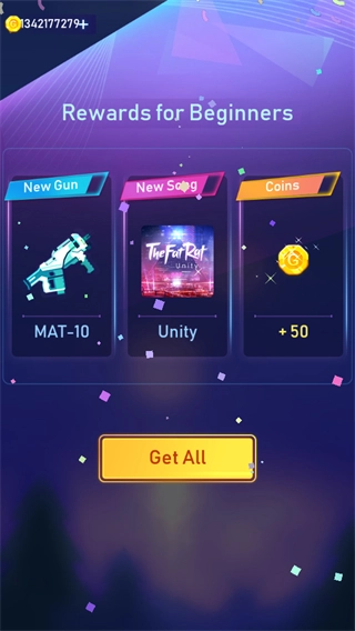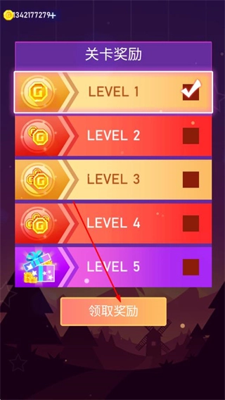 完成关卡后领取对应的奖励,借助这些奖励可以解锁更多的歌曲、枪械皮肤以及高难度关卡。