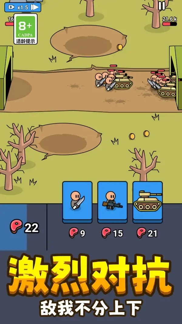 提供数十种独特的火柴人士兵,必须巧妙组合才能应对各种战斗情况。