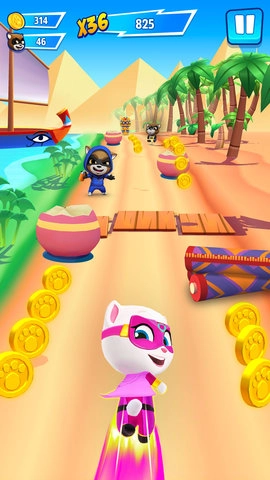 游戏采用q版卡通风格设计,色彩搭配精美可爱又鲜活,造型设计也十分用心。在这里,你能看到成熟的汤姆猫也有可爱的一面,展现出它的多面性。作为玩家,你需要操控汤姆猫进行跑酷,途中收集金条来建设自己的家园。此外,汤姆猫和安吉拉还会变身为超级英雄,跨越重重障碍,击败浣熊,拯救家族的小伙伴们。