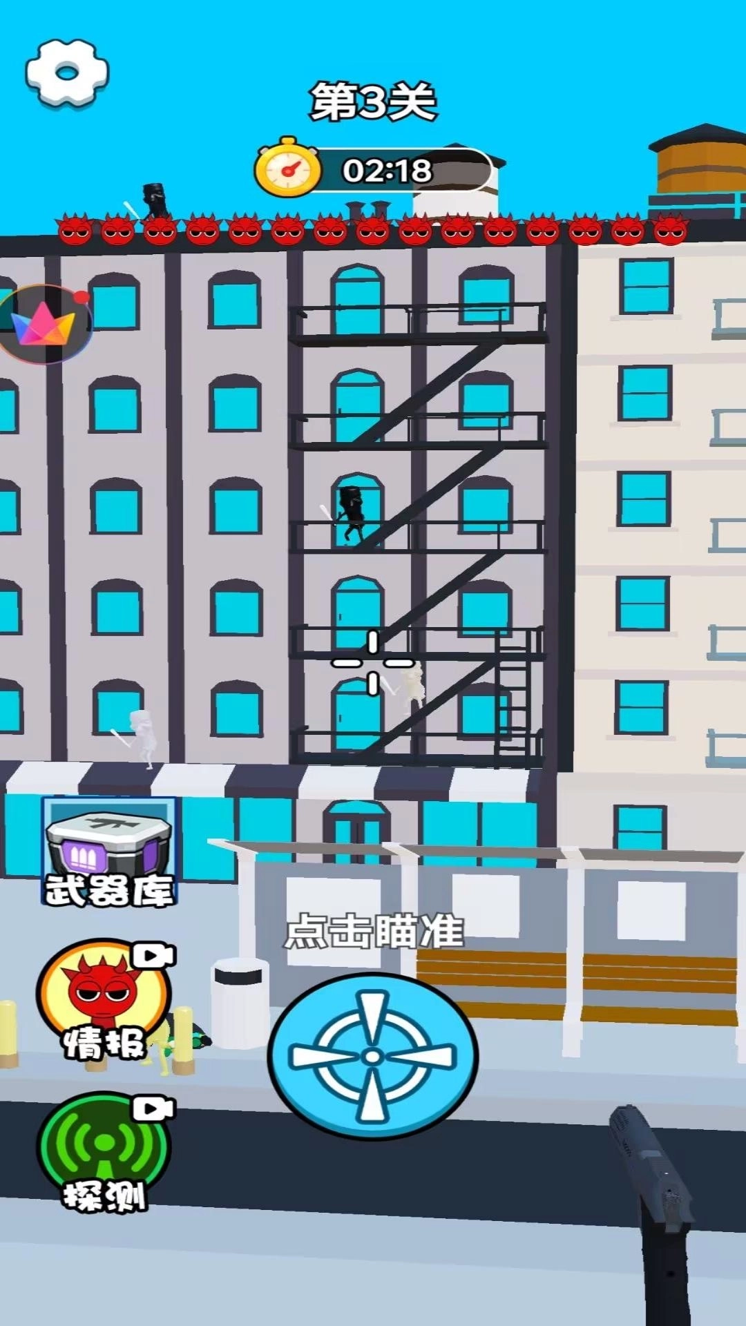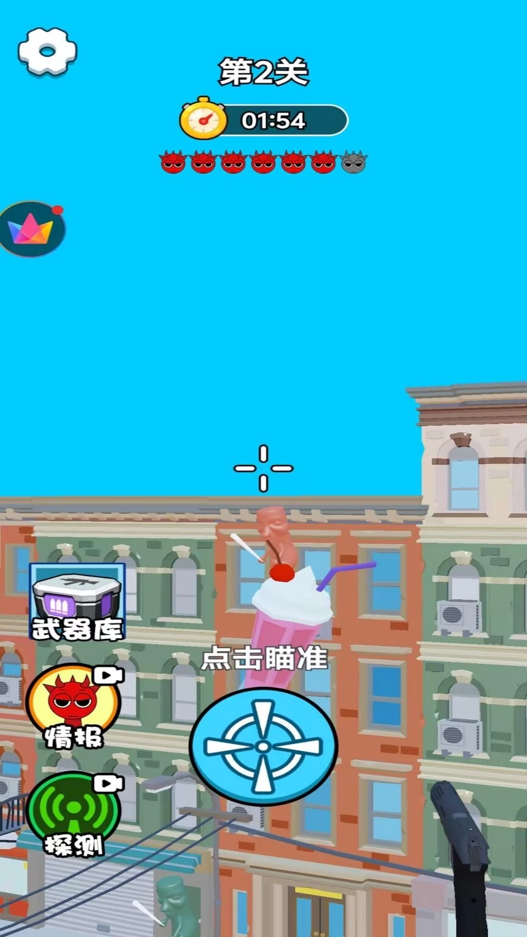 3、利用屏幕准星对准敌人,点击射击按钮就能开枪,长按则能开启狙击枪的精准瞄准模式,帮助玩家更便捷地锁定敌人的关键部位。