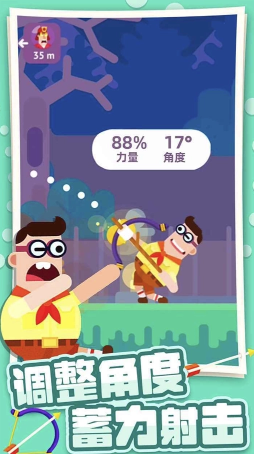 3、通过滑动屏幕来完成瞄准操作,长按屏幕进行蓄力以把控射击的力度,在此过程中还需兼顾箭矢飞行的抛物线轨迹、当前的风速状况以及敌人的移动态势,提前做出射击预判。