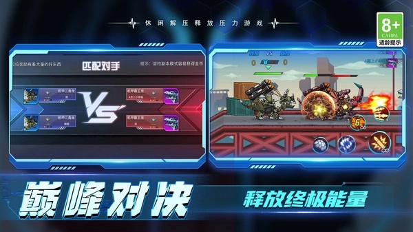 3、游戏内设有多种机甲装备可供玩家获取,玩家可通过参与对战、完成指定任务或前往商店购买等途径来获取这些装备,并能自由对装备进行强化升级。