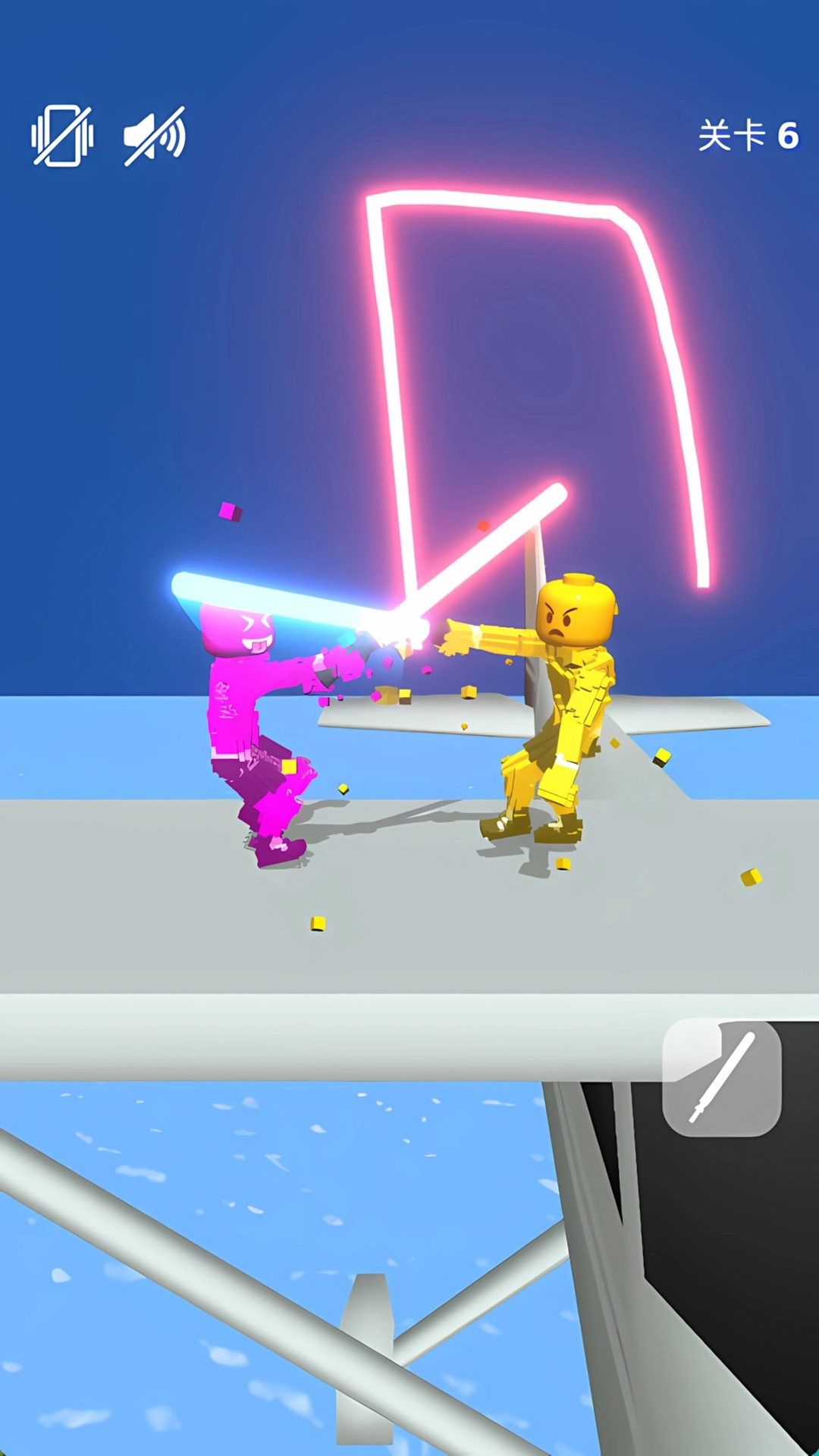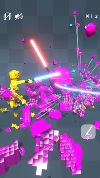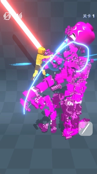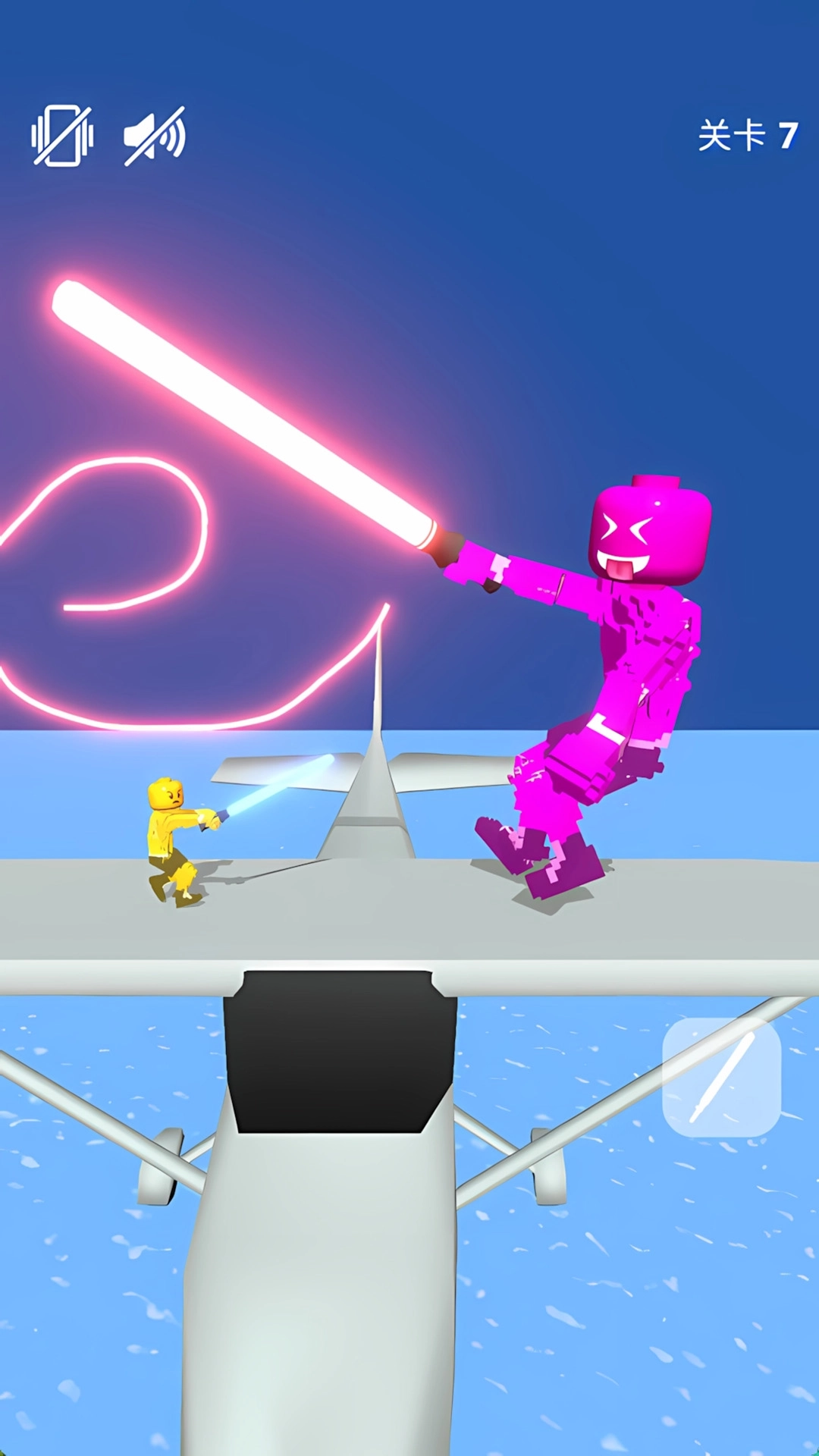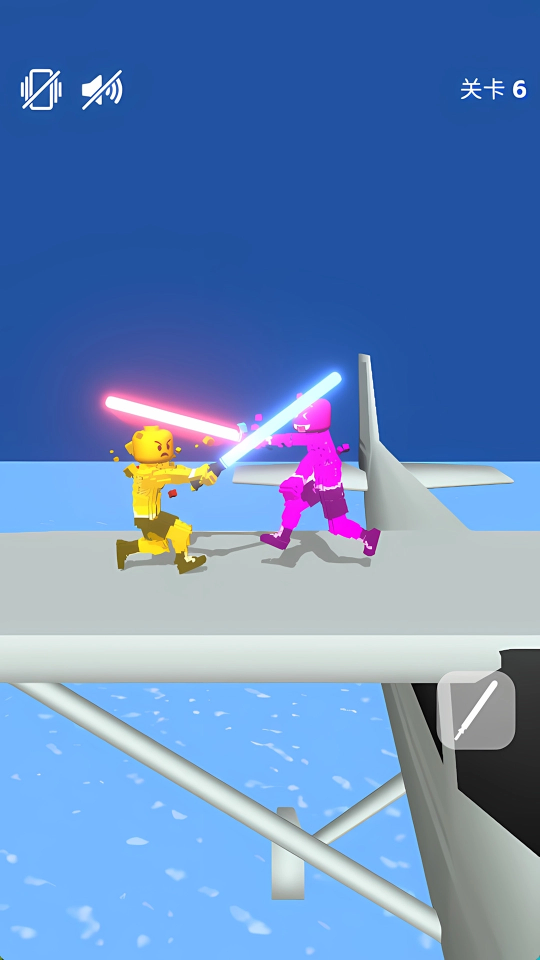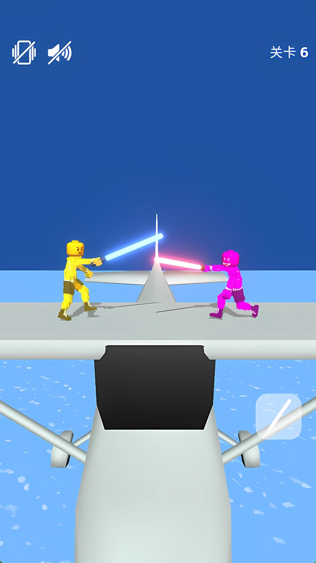 1、按照顺序逐步挑战关卡,在地面、飞机顶部等不同场景中,与各种组合的怪物展开对抗,成功通关后可解锁全新的光剑皮肤和技能。