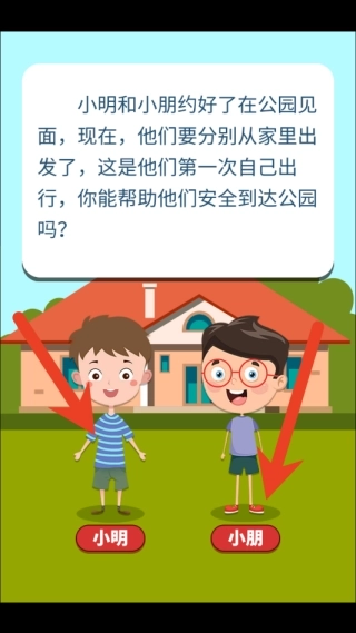 1、进入游戏后,可选择小明、小朋等不同身份,每种身份都对应着独特的交通规则挑战任务。