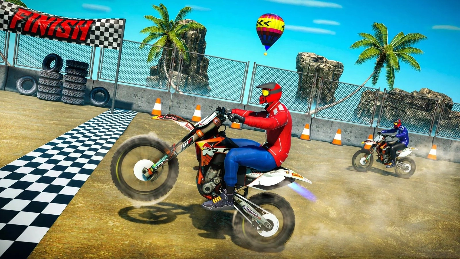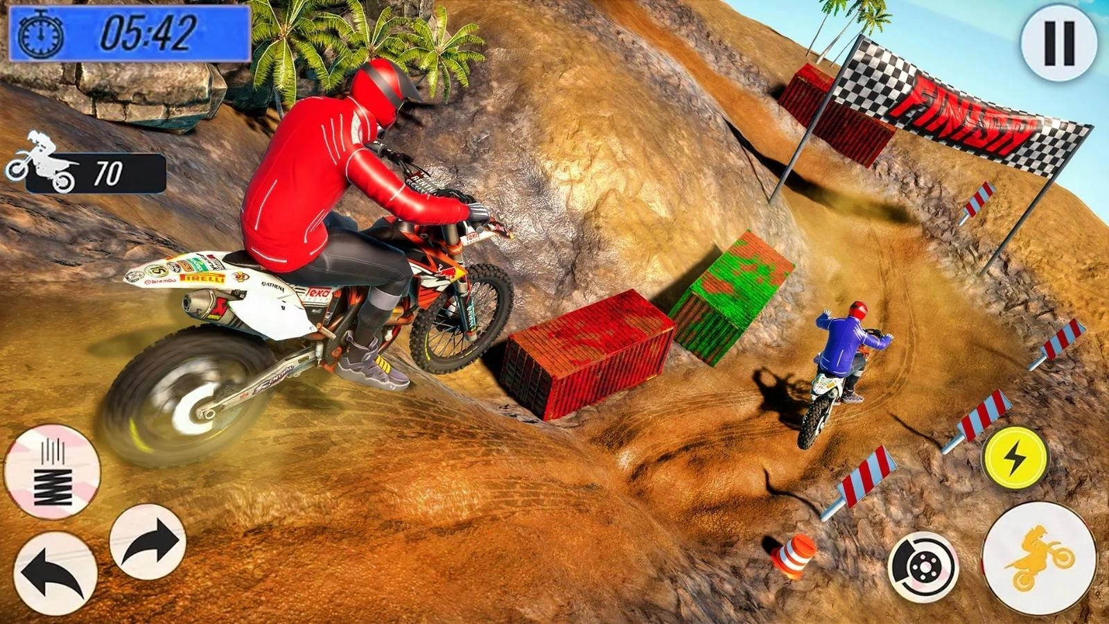 2.玩家能够操控多款高性能摩托车,在复杂地形里完成飞跃、翻转以及冲刺等动作。