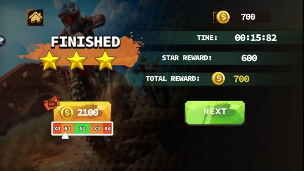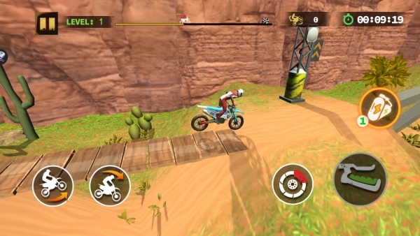3.关卡设置了时限和多路径选择,需要依据地形规划出最佳路线,玩家能够挑选不同的线路,开启有趣的摩托车特技挑战。