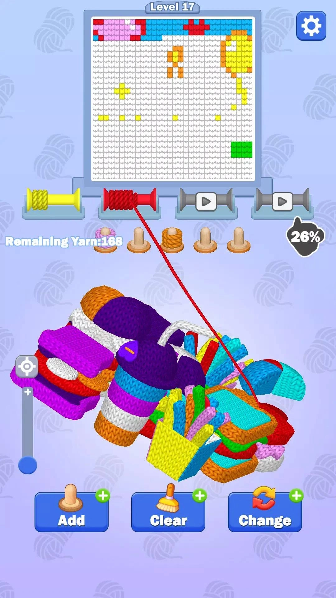 2.玩家解开缠绕在一起的毛线团后,能够把消除掉的毛线编织成精致好看的插画。