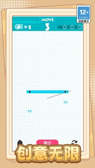 1.通过指尖滑动控制发光剪刀沿灰色目标轮廓移动,完成纸张裁切任务。