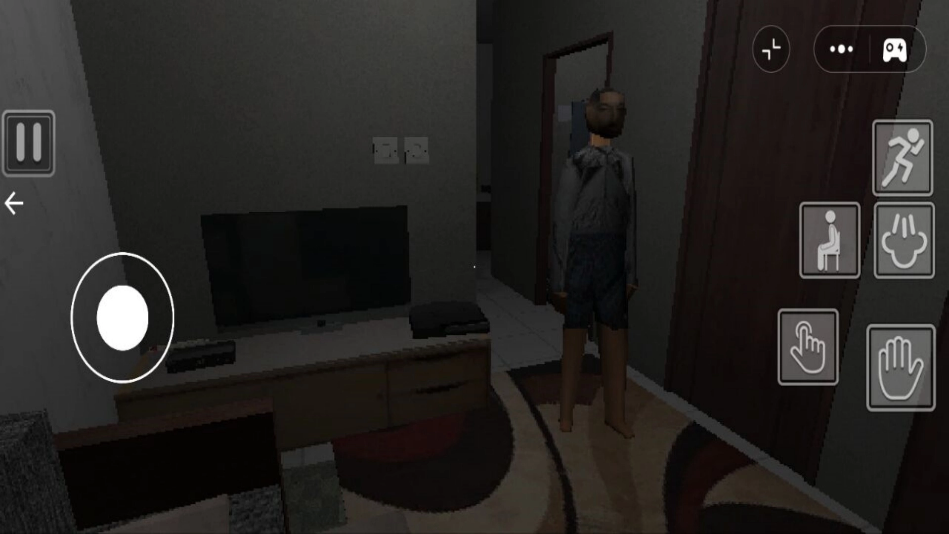 2、把屏幕中心的瞄准镜对准能够互动的物体,点击右边的手掌图标,就能触发开门之类的操作。