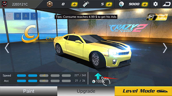 1、进入《疯狂赛车2》最新版本后,选择“Garage”进入车库,挑选您的爱车。