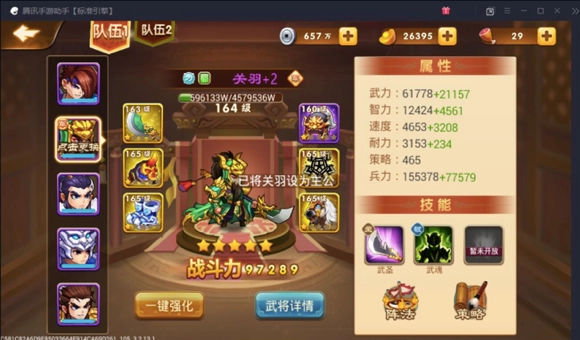与前锋阵形相配合。有了阵法自然也不能缺少战斗技巧,要是碰上实力强劲的武将,不妨用疑心之计与离间之策来对付敌方大将,水属性技能可以用来解决普通士兵,最后持续使用大还丹为我方武将恢复状态,就能逐步消耗直至击败对手。